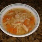 - Take chicken out of the pot and shred. Return to soup.